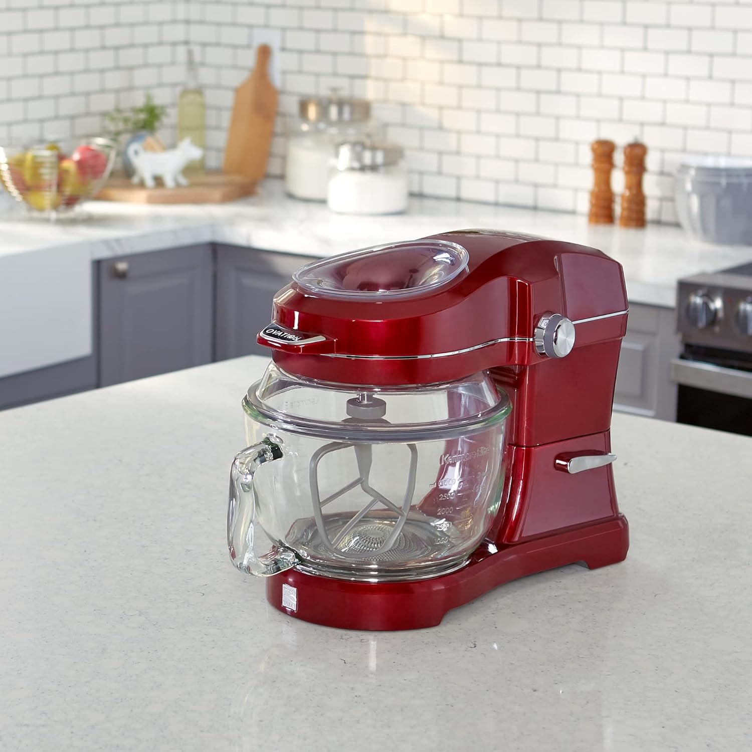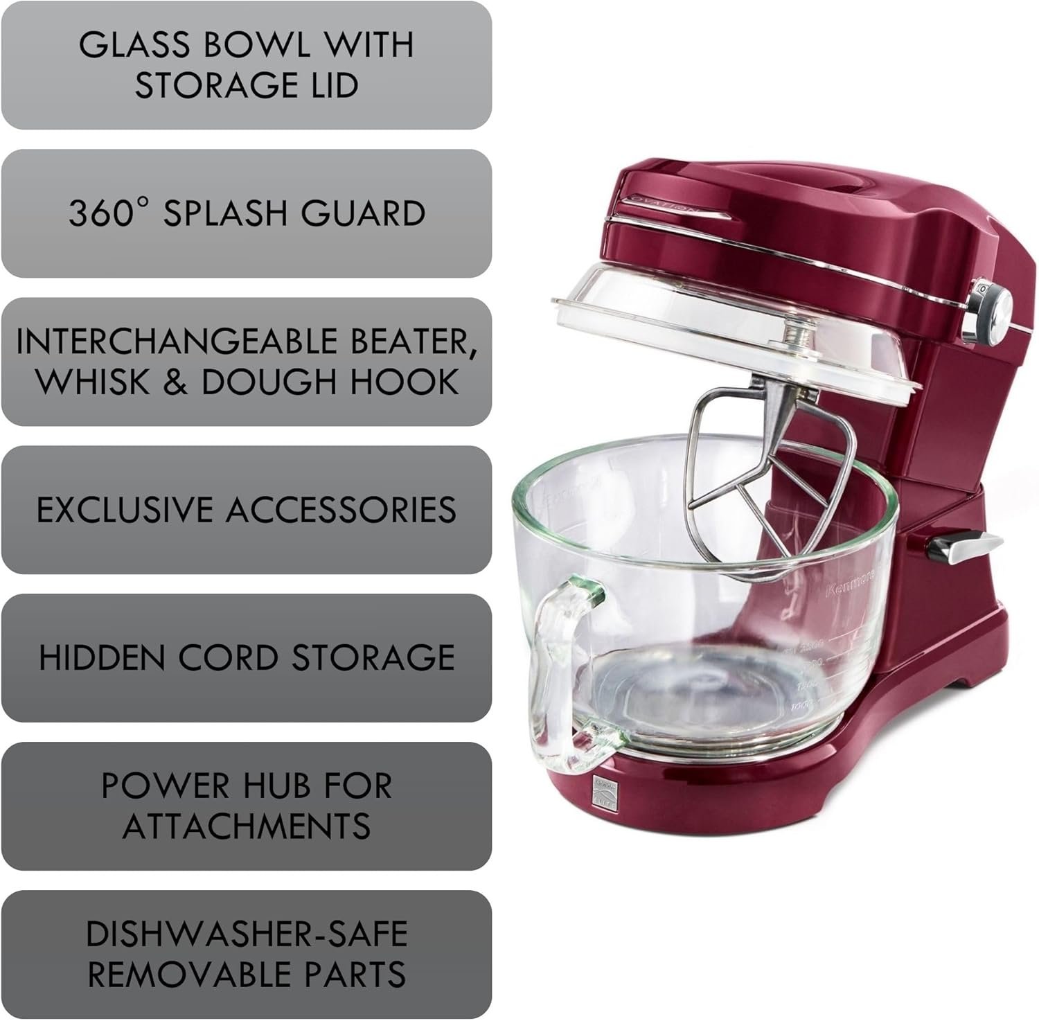 Kenmore 500W Stand Mixer with 10 Speeds Tilt Head Pour-In Top 5 Qrt Glass Bowl with Lid 360 Degree Splash Guard Beater Whisk Dough Hook Planetary Mixing Red
